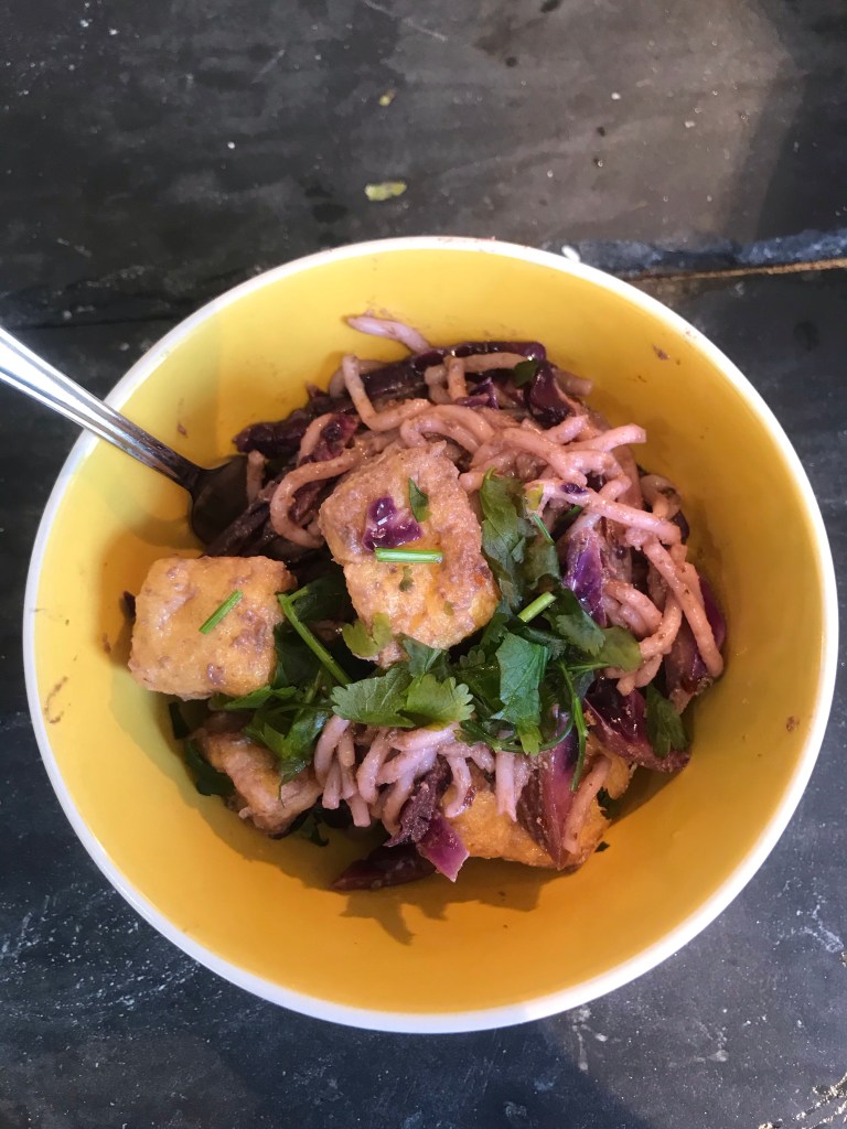 So friends, purple cabbage is an awesome veg, I’ll just admit it. My veg box people were genius giving me the gift that keeps on giving. This veg lasts forever and you can do a lot with it. Today I made spicy tahini noodles and it was awesome. Here is how.