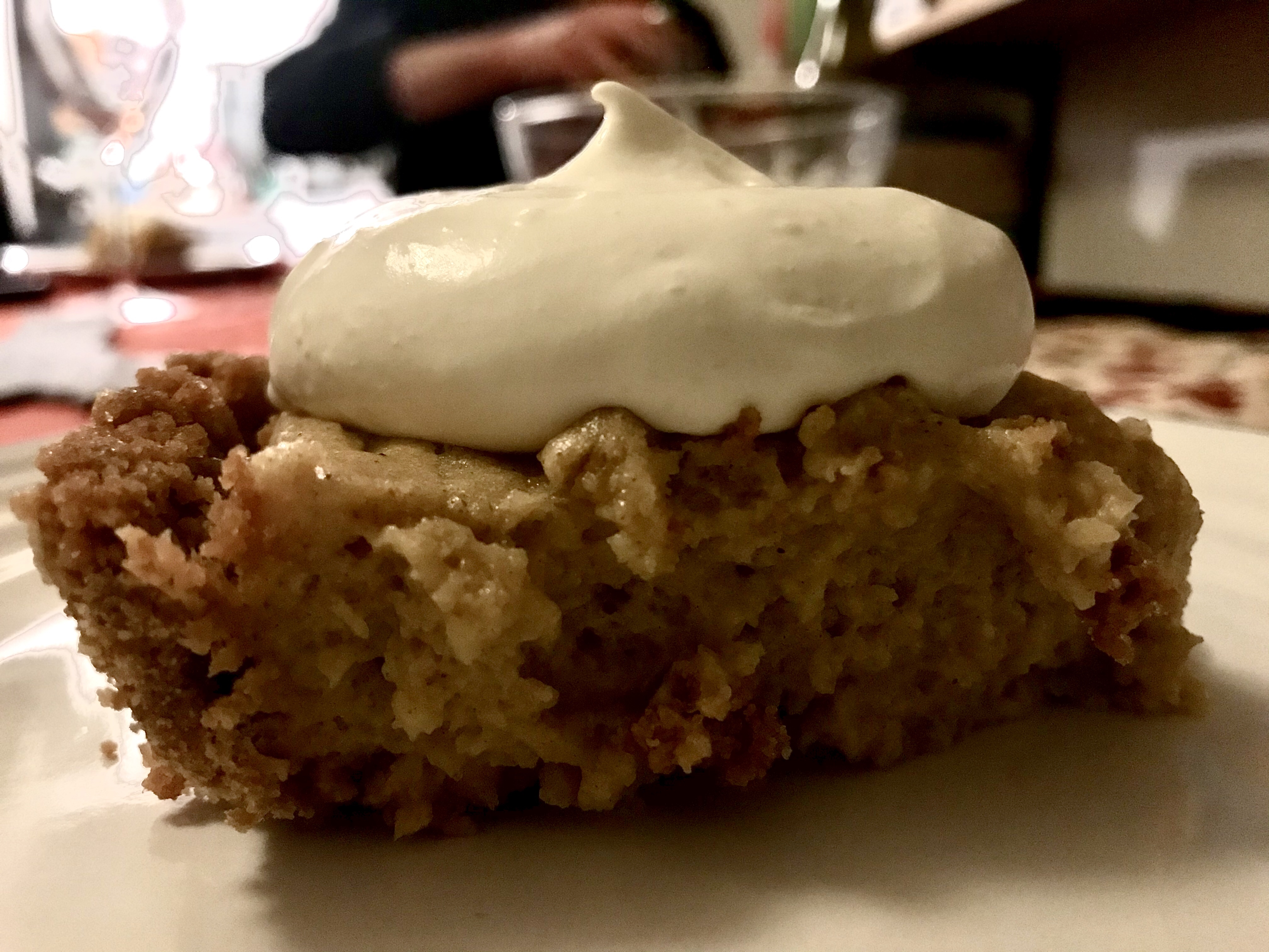I didn’t have pumpkin, so I used butternut squash, which worked beautifully. Also, I didn’t have graham crackers, so I used gingernuts which I think were a much better choice. The ginger is spicy and lovely against the filling. If you want to make this plant-based, I’m certain you can use any non-dairy substitute for the milk with no problem. It would take some experimenting to sort out egg substitutes (maybe Oatly custard for milk and egg yolks and aquafaba for the egg whites?) and to get the right amount of agar agar for gelatin (I don’t think it is a 1:1 substitute). I don’t think it is impossible to sort out, but it is worth a try because it is a great pie. In any case, if these ingredients are ones you use, I basically followed the recipe, except using squash and gingernuts, and the pie was absolutely fantastic.