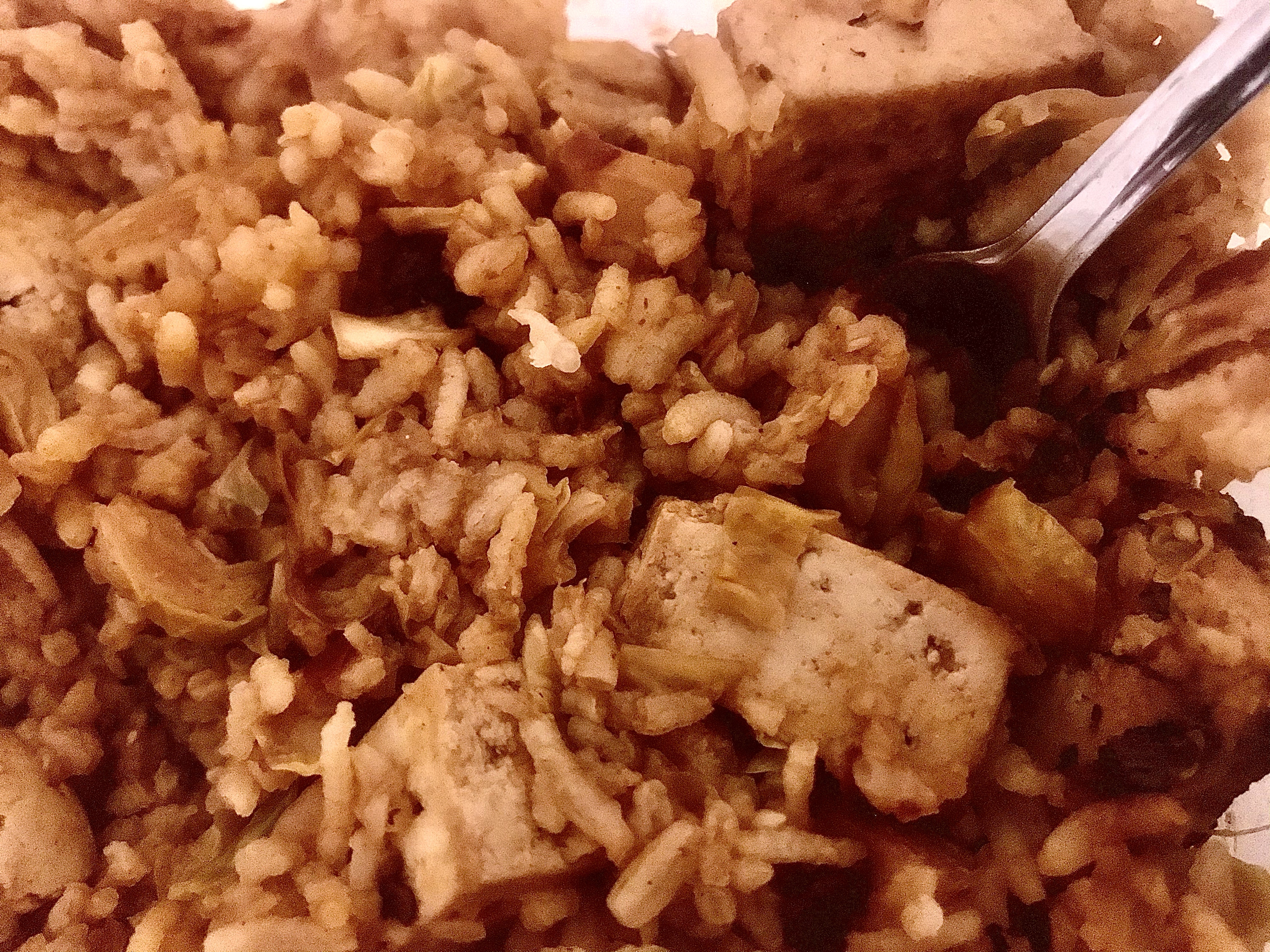 In a hot pan add some oil and sauté cubes of tofu for a few minutes. Add the shredded brussels sprouts with a bit of salt until everything looks green and a bit crispy. In a small bowl mix two tablespoons of black bean paste, some garlic and ginger (I have a jar of garlic and ginger paste, so I added a table spoon), 2 tablespoons of soy sauce, a teaspoon of sesame oil, 1 teaspoon of rice wine vinegar, and a bit of warm water to thin it out. Add it to the pan and mix for a bit. Serve over rice.