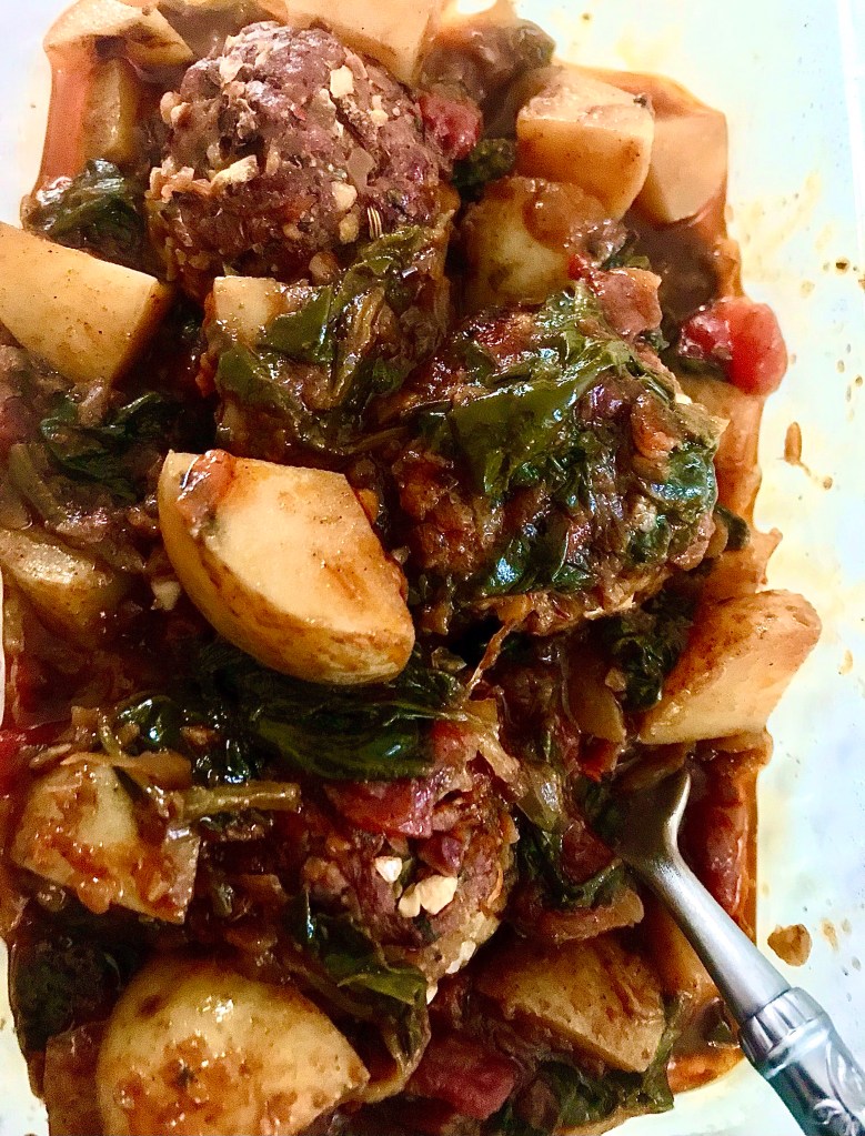 Sometimes I’m looking for a little protein boost for the things I make with the veg in my veg box. Here is a vegan meatball recipe my dear friend shared with me that I really love and I make a lot. They are nice as spaghetti and meatballs, meatball sandwiches, Swedish meatballs, or meatballs in any random veg stew or sauce. I’ve dumped them in my Greek potatoes, as seen here. It does require vital wheat gluten, so it isn’t gluten free, and it might be hard for some people to source. What I like about this recipe is that it is a firm, almost spongey meatball that soaks up a lot of sauce, but still manages to have its own wonderful texture (thanks to the chopped nuts) and flavour (thanks to the spices and other umami hits). Here is the link to the original recipe: