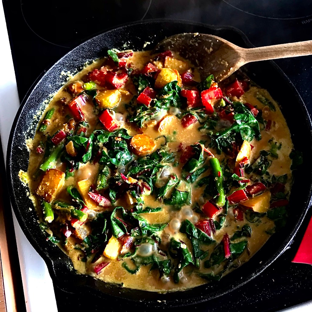 I had all the beautiful colours in my vegbox this week, so I decided to make Meera Sodha’s new potato, chard, and coconut curry recipe. Since I had carrots and green beans in my box, I threw those in with my potatoes and rainbow chard. This tastes as lovely as it looks. I’m so pleased. If you want something warming and pretty, try this: