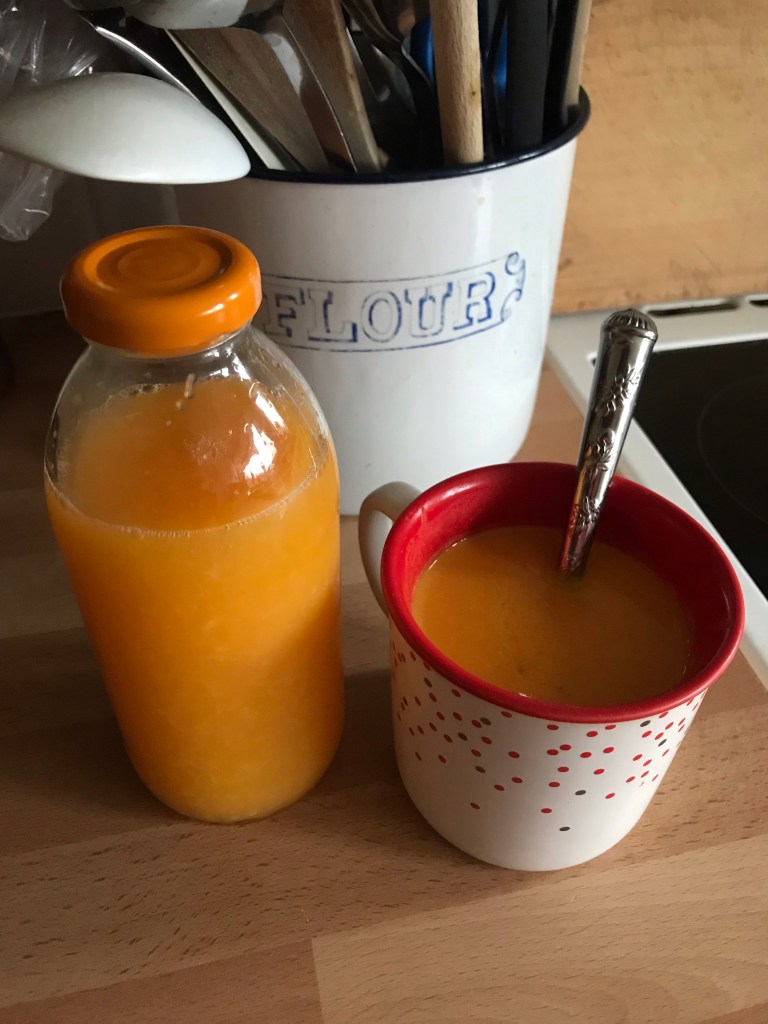 My friend and I had the same great idea to make use of our juice pulp! I use my vegbox oranges to make juice, then used the pulp in some carrot parsnip soup. It was a nice bright addition to a warming winter soup. Here is what I did.